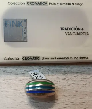 Sortija de plata de la colección Cromática de Fink Orfebres. - Nueva con etiqueta, certificado y estuche original. - Diseño con esmalte al fuego. - Combinación de colores vibrantes. La medida está en una foto
