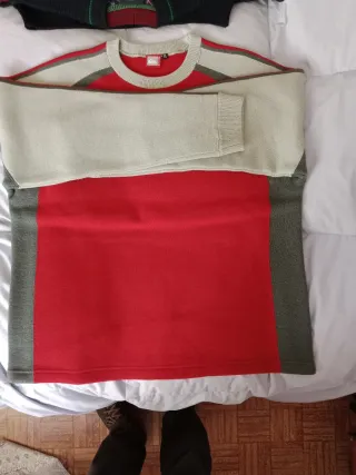 vendo toda esta ropa, las primeras 4 camisetas de deporte en total 8 euros, las otras siete quince euros, la 3 foto a 20 euros, los polos a 10 euros, el abrigo de mujer a 20 euros, los jerséis a 25 euros, los pantalones cortos a cinco euros, los chándal a 20 euros, los vaqueros a 30 euros y las sudaderas a 30 euros, en total podría vender todo por 120 euros. La mayoría es talla M pero hay alguna talla S