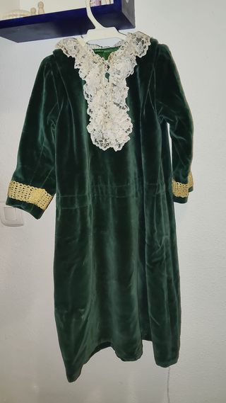 Disfraz de túnica con capucha, ideal para Carnaval o Halloween. El diseño es versátil y cómodo. Es de terciopelo y el largo se puede cortar si es preciso. - Túnica larga con mangas acampanadas. - Capucha integrada. - Cierre en la la parte delantera. Muy rebajado.