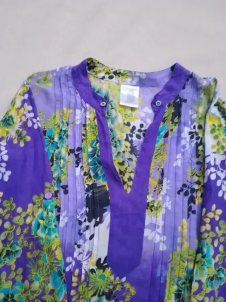 Túnica vaporosa con un bonito estampado floral. - Diseño con cuello mao y detalles de plisados. - Botones decorativos en el cuello. - Tejido ligero y fluido.