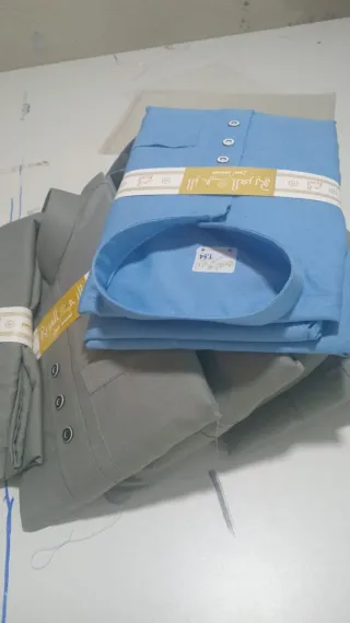 Conjunto de túnicas Candora en dos colores, celeste y gris. Perfectas para cualquier ocasión. Muchos colores. - Túnica celeste con cuello redondo y botones. - Túnica gris con cuello redondo y botones. - Talla L (equivalente a 52-54).
