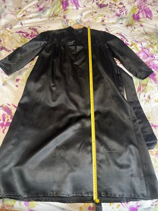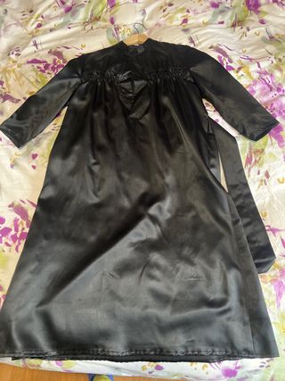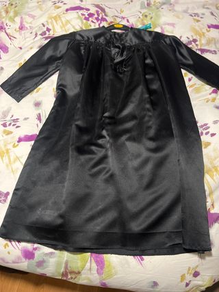 Túnica negra para niño/a, ideal para procesiones de Semana Santa. Confeccionada en tela satinada. - Diseño con cuello mao. - Cintura fruncida con detalle. - Cierre de botones. - Incluye fajín a juego. -Pongo medidas