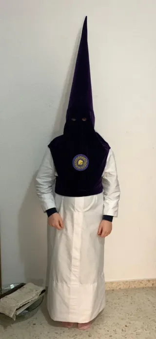 Túnica de nazareno de la Hermandad del Mayor Dolor.de jerez de la frontera. Niñ@ 13 años . Echa a mano solo una puesta . precio negociable - Combina colores morado y blanco.