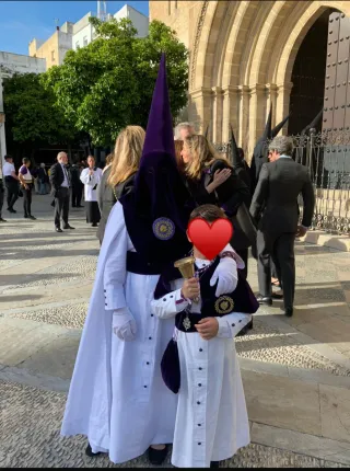 Busco Túnica de la Hermandad de la Candelaria de Jerez. - Color morado con detalles blancos. - Diseño clásico de túnica. Para niño de 1,85 metros, delgado