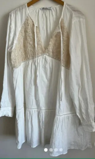 Vestido/túnica ibicenca . Preciosa ..Detalle de encaje en la parte delantera.