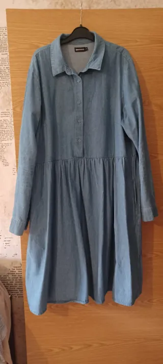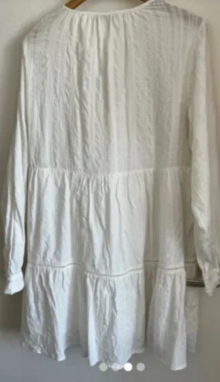 Vestido estilo túnica de corte camisero, ideal para un look casual.Usado en dos ocasiones,esta como nuevo! - Diseño de manga larga. - Cuello camisero. - Cierre de botones en la parte delantera. - Falda con vuelo y fruncido en la cintura. - Bolsillos laterales.