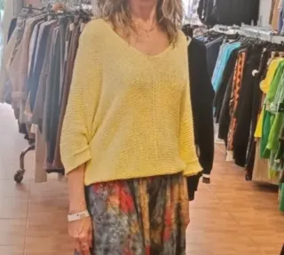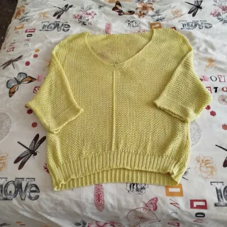 Jersey amarillo T-Única. Cuello de pico mangas 3/4. Comprado en tienda local Más artículos en mi perfil decoración sandalias pantalones blusa camiseta vestido falda top Jersey chaqueta tejanos bikini camisa copas abanico cuadro botas zapatos
