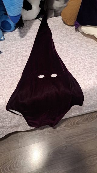 Túnica de estilo Macarena, utilizada en procesiones de Semana Santa. Confeccionada en terciopelo. - Diseño con capucha. - Aberturas para los ojos. Sin escudos solo botonaduras Usada una vez nueva