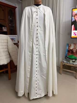 Conjunto de túnica y capa de la Hermandad de la Macarena. - Túnica de manga larga. - Capa larga con abertura frontal. - Medidas largo 150cm desde el cuello - Dobladillo 16cm