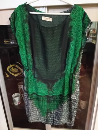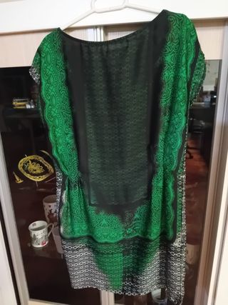 Vestido/túnica marca: MET chino and friends. Talla : M/L estampado en verde, blanco y negro. Muy cómodo y fresco. En la última foto tienes las medidas. Hago envíos