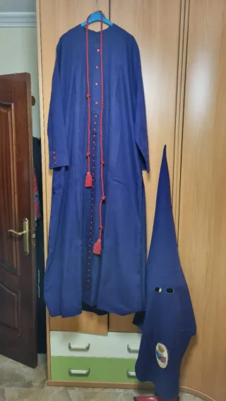 Túnica de hermandad de El Baratillo. Incluye cordón con borlas y escudo - Túnica azul con detalles rojos. - Cordón rojo con borlas y escudo. - Talla XL Se puede probar sin compromiso