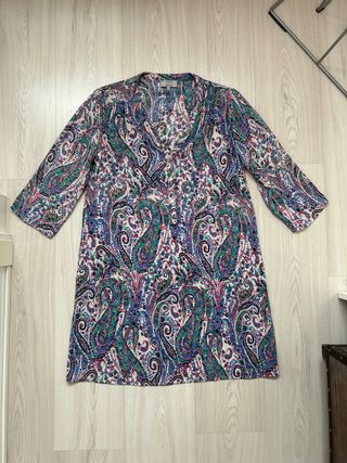 Preciosa túnica de la marca MILANO Woman Collection. Es de manga tres cuartos y tiene un estampado paisley precioso en tonos multicolor. - Talla S (equivalente a 36 o 8) - Diseño playero - Tejido ligero y fluido