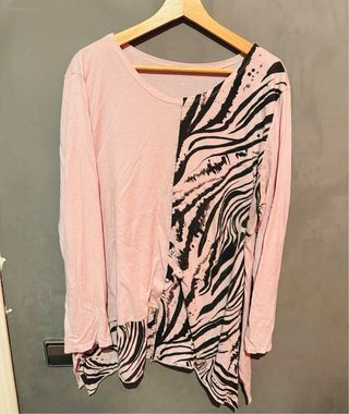 Camiseta larga, mangas 3/4, Diseño con motivos de animales y vegetación. puesta 2 veces (nueva 55€)