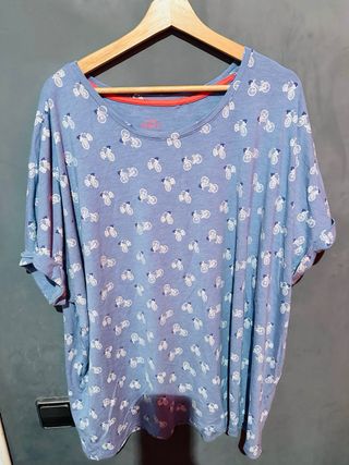 Amplia camiseta de media manga estampada. Muy suave. De axila a axila: 57 cm. Largo: 75 cm. 97% viscosa, 3% elastano.