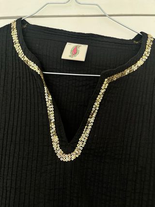 Tunica Negro Nuevo Bordado con lentejuelas doradas Elegante Manga 3/4 Se puede usar como cubre bikini O Se puede poner con leggings o con tejanos Queda chulisimo