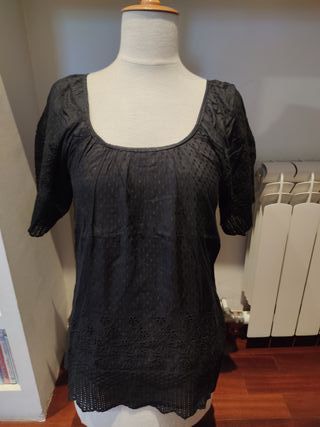 Top negro con bordados Naf Naf t. 36 con seda