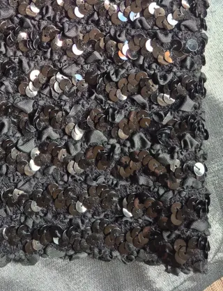 Elegante top elástico, con un diseño llamativo de lentejuelas. Acabado brillante en tono negro. Corte moderno y favorecedor. Talla única, SIN ESTRENAR! Visita mi perfíl! 🩷