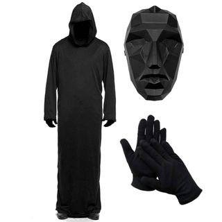 Disfraz para El Juego del Calamar, El Frontman Lider Hombre de la Máscara Negra Temporada 3 Squid Game "Llaves y cuchillos". Ideal para Cumpleaños, Cosplay, Celebraciones, Cumpleaños, Carnaval y Fiesta Halloween, Adulto Hombre y Mujer. Incluye: 1 Máscara negra plastico (pvc) 1 Túnica con capucha 1 Par de Guantes negro Perfecto para Halloween, Carnaval, fiestas temáticas y cosplay. Tallas disponible: S-M-L-XL ¡No te pierdas la oportunidad de ser parte de este fenómeno mundial! Envio rapido seguro y garantizado a estrenar Recibelo antes de 48-72 hrs (España), Italia y Portugal antes de 4 dias laborables.