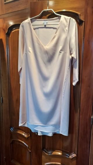 Precioso vestido túnica Pedro del Hierro, color rosa claro, talla 38. El vestido viene forrado, con las mangas abiertas en los laterales y rematadas con 2 botones. Muy fino y elegante. Utilizado en una comunicación. En perfecto estado. Los detalles se aprecian en las fotografías, puesto es similar al de la última foto publicada en el anuncio, pero distinto modelo y diferente color, además escote en pico y el detalle de las mangas muy favorecedor.