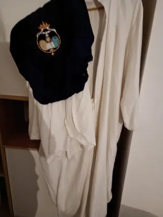 Se vende túnica de nazareno usada de la Hermandad de San Pablo de Sevilla. 🔹 Color: túnica y capa en tono crema/marfil 🔹 Antifaz: negro Incluye únicamente: Túnica Capa Antifaz (No incluye cíngulo, escudo, guantes ni otros complementos). 📏 Medidas: Largo de la túnica: 105 cm Largo de la capa: 110 cm Largo de mangas: 44 cm Antifaz: 1 metro de largo Altura hasta los ojos: 55 cm Túnica usada, en buen estado. Ideal para niño/a o persona cuya estatura se ajuste a las medidas indicadas. 💶 Precio: 120 € Entrega en Sevilla. Interesados pueden contactar sin compromiso.