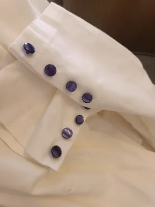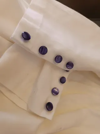 Túnica blanca botones terciopelo morado