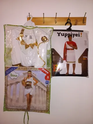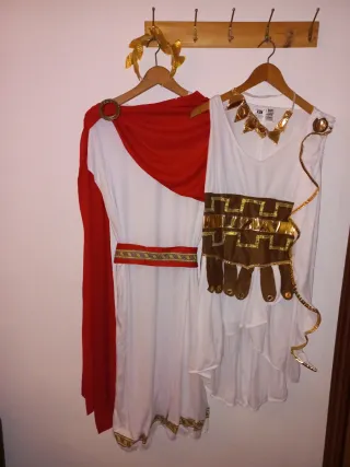 Conjunto de disfraces para pareja con temática romana. Usados solo una vez, como nuevos, en su embalaje original. Muy bien conservados. En perfecto estado. Ambos disfraces talla M/L - Disfraz hombre Romano Cesar, túnica, capa, cinturón y diadema dorada. Talla M/L, da bastante talla. - Disfraz mujer Romana, vestido y cinta del pelo dorada en forma de hojas. Talla M/L Perfecto para carnavales, halloween, despedidas de soltero, fiestas de pueblos... #Disfraz #disfrazhombre #disfrazmujer #disfrazpareja #disfracespareja #disfrazcarnaval #carnaval #halloween #despedidadesoltera #despedidasoltero #disfrazromano #disfrazromana #cesar