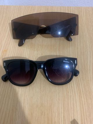 Lote de dos gafas de sol con montura negra y lentes degradadas. - Un par de gafas de sol estilo visor con lentes ahumadas. - Otro par de gafas de sol con montura negra y diseño clásico. 5€ cada uno
