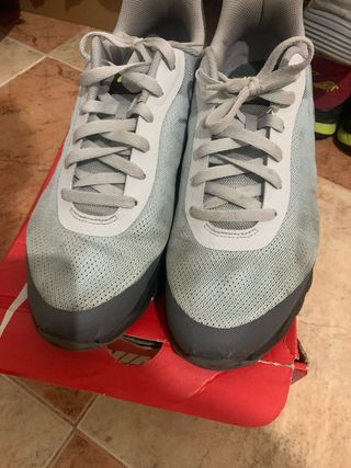 Zapatillas deportivas Nike Air Max en tonos grises y blancos. - Diseño moderno y cómodo. - Detalle de logo en la plantilla.