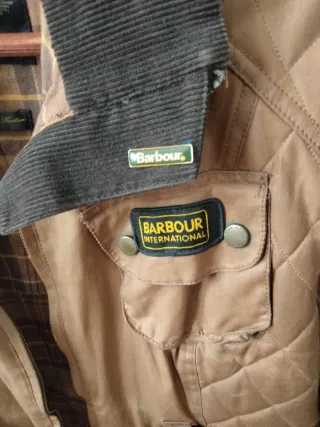 Chaqueta acolchada estilo motorista de la marca Barbour. - Diseño acolchado con rombos. - Cuello de pana. - Bolsillos frontales con solapa y botón. - Cierre de cremallera y botones a presión. - Parche de la marca en el bolsillo. Es entallada aunque pone la 40 da para más talla yo uso de arriba una l y de caderas una 44.