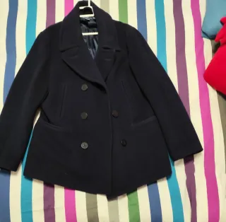 Elegante abrigo de paño de la marca Ralph Lauren. - Color azul marino. - Diseño clásico de doble botonadura.