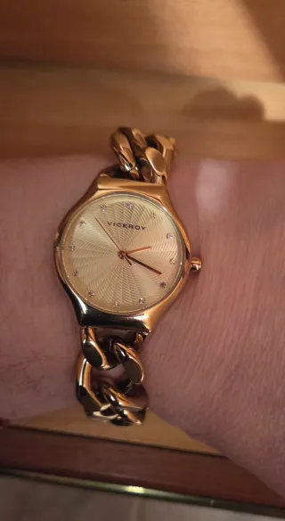 Reloj Viceroy para mujer Totalmente de acero inoxidable con caja y cadena chapado en oro de 18 quilates Esfera con detalles texturizados y pequeños cristales. Pulsera de eslabones gruesos