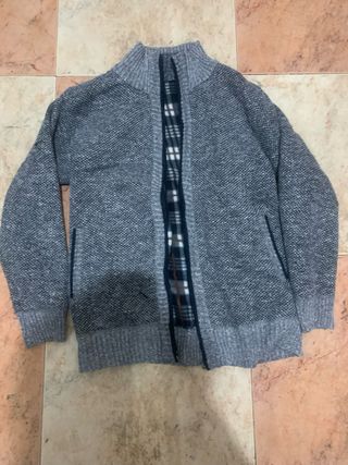 Jersey de punto con cremallera frontal y un forro interior con estampado de cuadros. - Cuello alto acanalado. - Bolsillos laterales. - Puños y bajo acanalados.