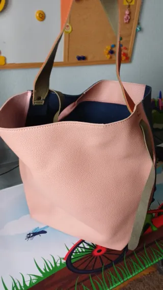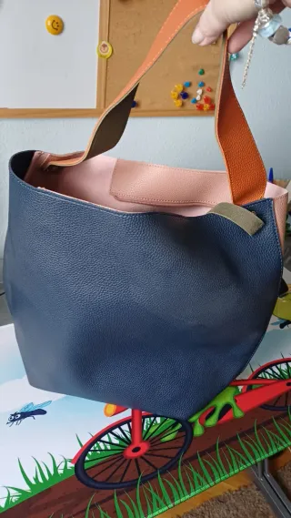 Bolso de mano con un diseño moderno y elegante, combinando dos tonos. - Exterior en piel sintética texturizada. - Interior forrado en tela. - Asas de mano cómodas.