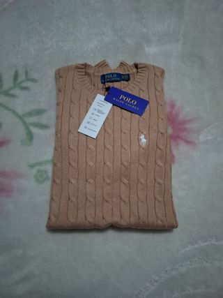 Jersey de punto trenzado de Polo Ralph Lauren en color beige. Un clásico atemporal. - Diseño de punto trenzado. - Cuello redondo. - Logo del caballo bordado en el pecho.