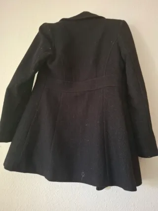 Abrigo negro con un diseño clásico y detalles cuidados. - Cierre de botones. - Cuello solapa. - Forro interior.