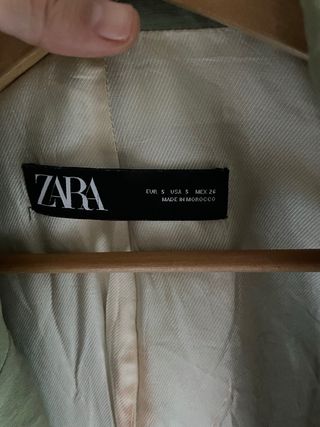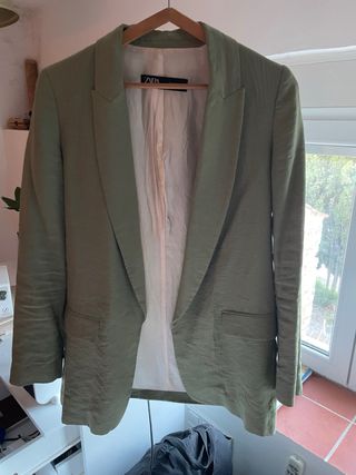 Blazer de Zara en color verde clarito, como nuevo. Solo ha sido usado en tres ocasiones. - Diseño elegante y versátil. - Tejido con textura sutil.