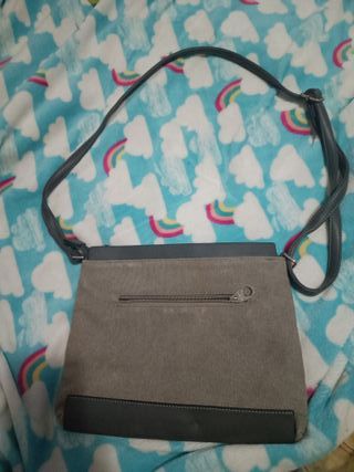 Bolso bandolera con un diseño moderno y práctico. - Material de lona resistente. - Ribete inferior en piel sintética. - Cremallera en el bolsillo trasero.