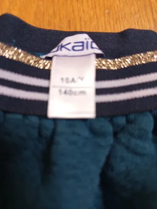 Falda de vestir para niña de la marca Okaïdi. - Talla 10 años / 140 cm. - Diseño con detalles dorados y rayas blancas.