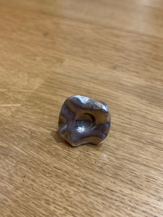 Anillo de la marca Uno de 50 con un diseño único y llamativo. - Acabado plateado con detalles multicolor. - Diseño orgánico y moderno.