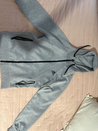 Sudadera Adidas gris con capucha y cremallera