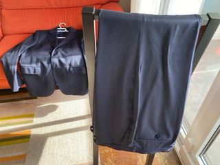 Traje de chaqueta de la marca Pedro del Hierro en color azul. Se encuentra en excelente estado. - Chaqueta de corte clásico. - Pantalón a juego. - Tejido de calidad tx performance - Lana italiana - Solo tiene 2 puestas - Nuevo cuesta 350 euros