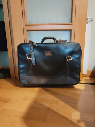 Maleta de viaje piel negra y marrón