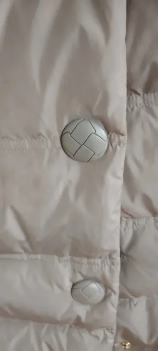 Cazadora de mujer en color beige. Presenta un diseño acolchado y detalles de botones. - Diseño acolchado. - Cierre de botones.