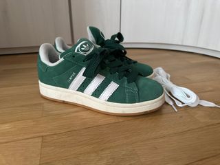 Zapatillas Adidas Campus 00s en color verde y blanco. Un clásico renovado con un diseño moderno. - Parte superior de ante. - Detalle de las tres rayas blancas. - Suela de goma. - Incluye cordones blancos adicionales.
