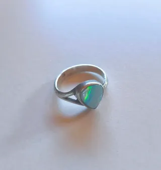 Anillo con un hermoso ópalo australiano. La plata le da un toque elegante y el diseño es ajustable. - Piedra de ópalo australiano con destellos multicolores. - Montura de plata.