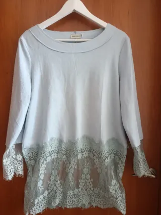 Jersey de manga larga con un bonito detalle de encaje en el bajo y los puños.es como un verde agua - Cuello redondo. - Tejido suave y ligero. - Diseño elegante con encaje floral.
