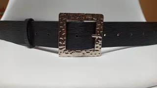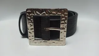 Cinturón negro hebilla plateada texturizada