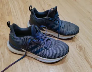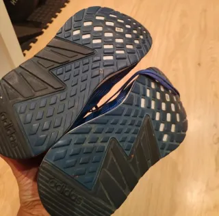 Zapatillas deportivas Adidas en tonos azules y grises. Perfectas para el día a día o para hacer deporte. - Diseño moderno y cómodo. - Cierre con cordones.