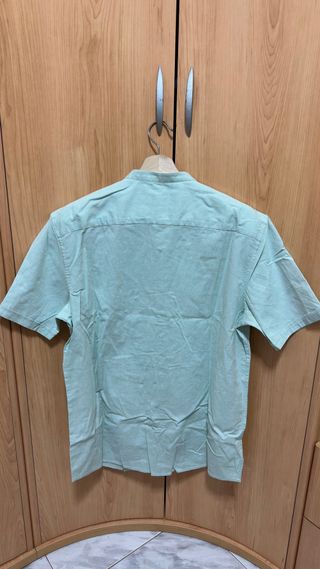 Camisa de manga corta con cuello mao. - Color verde. - Talla L.