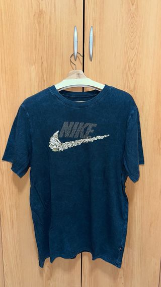 Camiseta de manga corta con un diseño llamativo. - Logo de Nike. - Color azul con acabado desgastado.